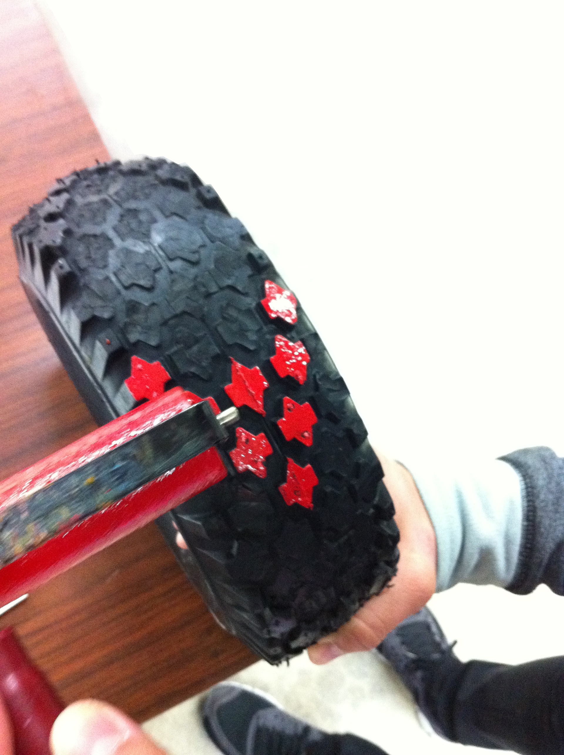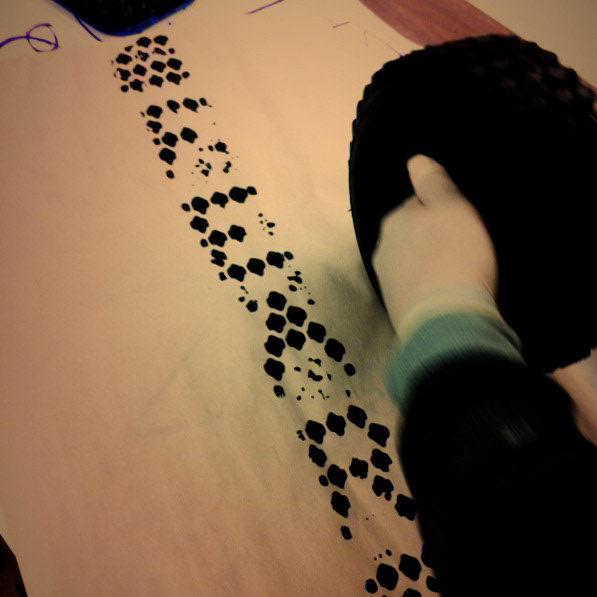 •SUMMARY: Experimental process that prints the phrase “HAVE NO FEAR.” Edition of 25. A student project collaboration with Eugene Takagi and Bryan Ku done at CSULB with Professor Andrew Byrom. A typeface was created from a preexisting pattern in tire treads. Letterforms were carved out such that the positive area left was used to create the words.